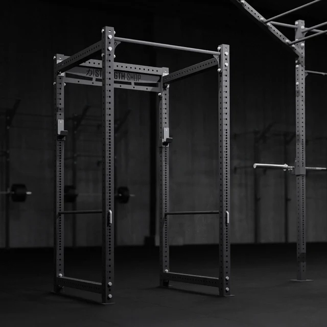 Riot MRR Square Rack to „starszy brat” wersji Compact, oferujący pełną wysokość i jeszcze większą przestrzeń roboczą. Konstrukcja typu czterosłupowego (4-post) zapewnia idealny rozkład mas, co sprawia, że klatka jest niewzruszona nawet przy odrzucaniu sztangi po nieudanych próbach przysiadów. Laserowo wycinane otwory na całej wysokości słupów pozwalają na milimetrowe dopasowanie akcesoriów do budowy anatomicznej ćwiczącego.