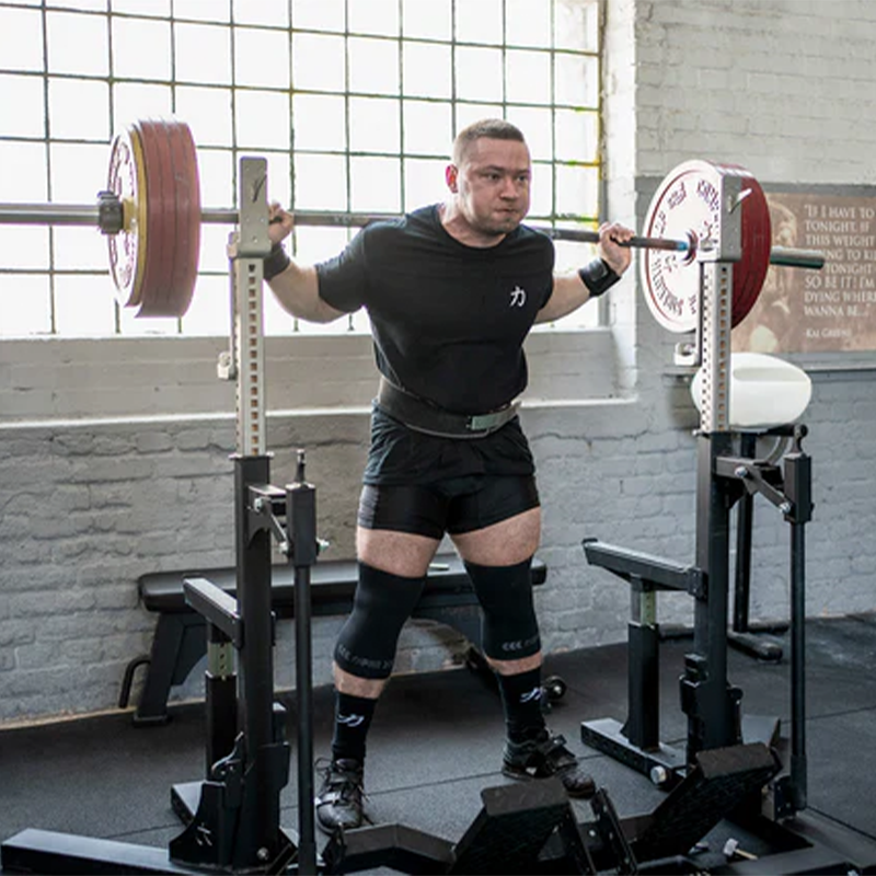 Kluczowym elementem są zintegrowane dźwignie (jacks), które umożliwiają zmianę wysokości haków J-cup w sekundę, nawet gdy na sztandze znajduje się maksymalne obciążenie – co jest standardem na oficjalnych zawodach. Ławka została wyposażona w antypoślizgową tapicerkę o dużej gęstości, zapewniającą doskonałe wsparcie i bezpieczeństwo. Dodatkowo, stanowisko posiada regulowane ramiona bezpieczeństwa (spotter arms) oraz podesty dla asekurującego. Słupy stojaków można nachylić do wewnątrz, co pozwala na szeroki chwyt przy przysiadach dla zawodników o dużej rozpiętości ramion.